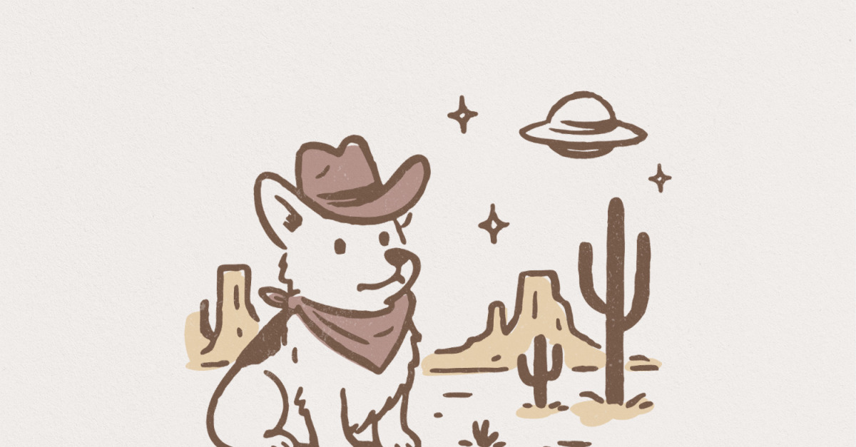 Retro Corgi Cowboy in Desert, Cute Dog with Bandana, UFO Western Scene PNG, Whimsical Animal PNG, Digital Download, Space Dog T-shirt Art