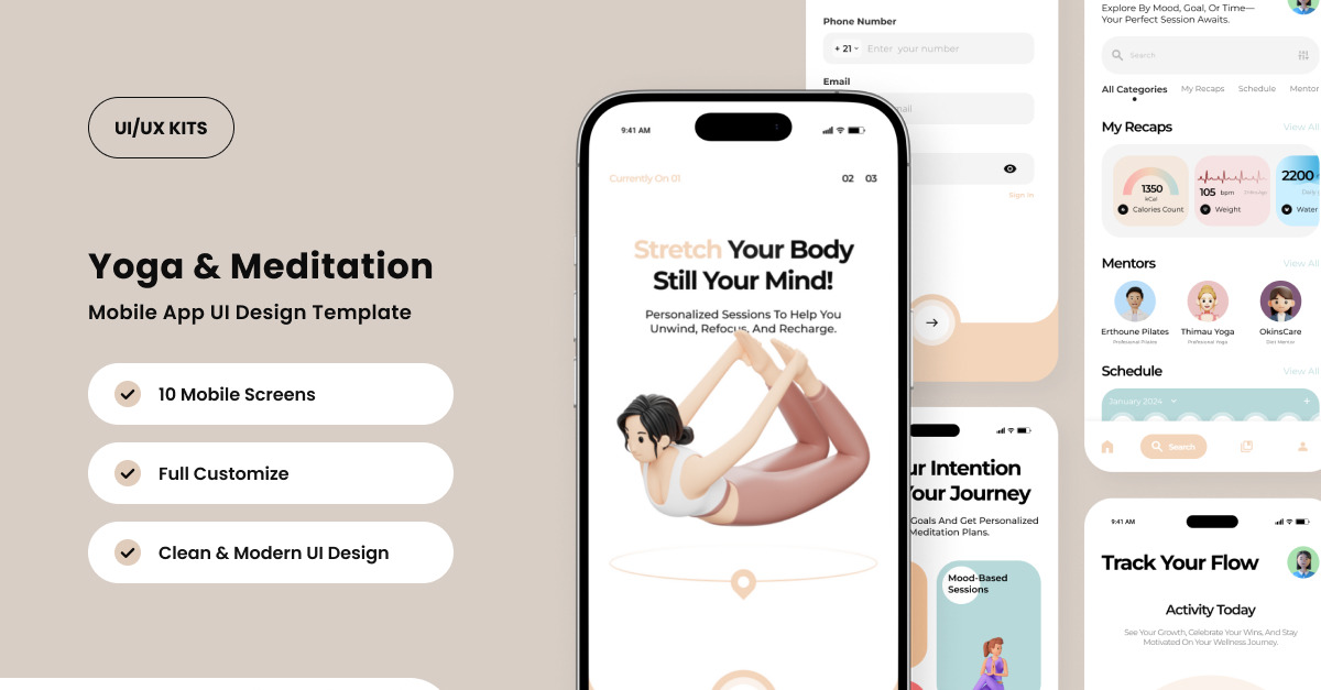 Serenita breathes softness and simplicity into your mobile app. It’s built for relaxation journeys with calming color tones and nature-inspired UI components. **Highlights:** – High-quality and professional screen layout design – Fully customizable and easy-to-edit components – Well-organized and neatly structured layers – Uses open-source fonts for flexibility – Included file formats: `.fig`, `.sketch`, `.xd`...