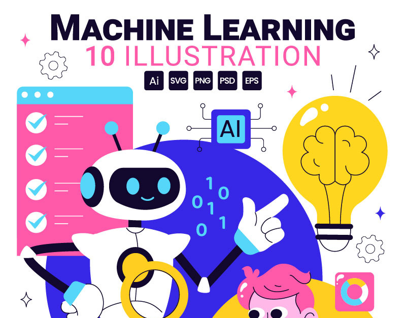 Machine Learning Vector Illustration featuring Artificial Intelligence Jobs, Scientists Working with Big Data and Technology Engineers in a Background Suitable for Poster, Web Banner, Brochure, Landing Page and Others Background Template Features: – Fully editable vector files, easy to edit the object, color and background – Include 100% vector Ai, Eps 10, SVG – PNG...