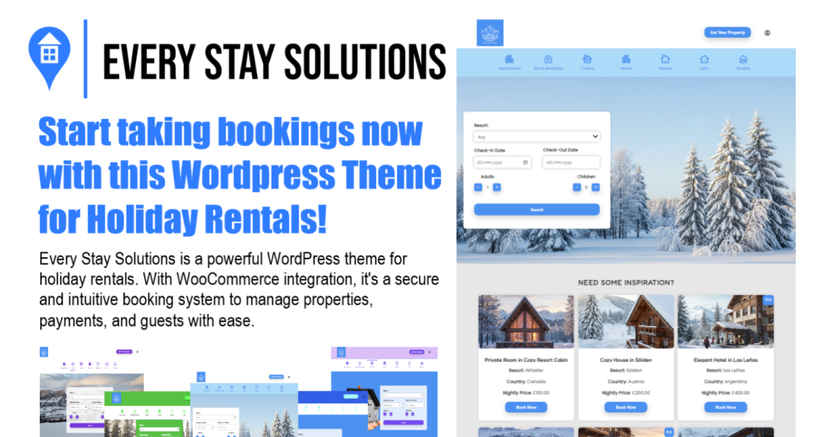 Every Stay Solutions: The Ultimate WordPress Theme for Holiday Rentals Every Stay Solutions is a powerful and intuitive WordPress theme designed specifically for holiday rentals, villas, apartments, and boutique hotels. This theme provides a complete and robust platform for managing your rental business with ease, eliminating the need for complex coding or relying on multiple,...