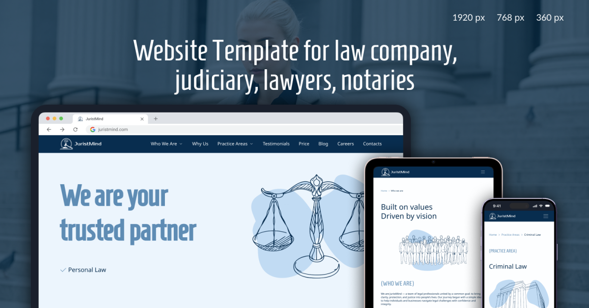 JuristMind is a multi-page website designed to present key practice areas, teams, cases, prices and news. The site is designed to provide users with a clear structure, professional content and a convenient way of communicating with lawyers. A fully responsive layout ensures a smooth and accessible experience across all devices, from desktops to smartphones, making...