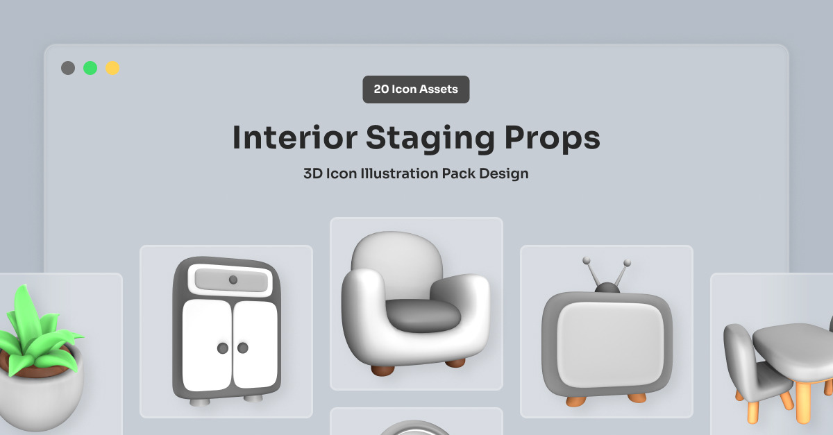 Build eye-catching room layouts with this 3D icon pack featuring tables, cabinets, chairs, and decor items. Designed with a clean and elegant look that works for multiple creative use cases. Perfect for staging concepts, real estate mockups, or architectural presentations where you need scalable, high-quality assets to tell a story visually. **Highlights:** – 20 unique...