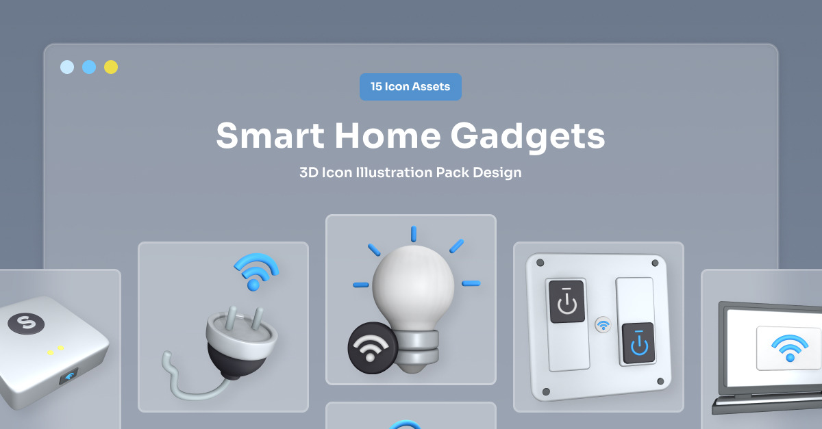 Realistic 3D icons inspired by modern smart home gadgets. Includes bulbs, hubs, cameras, and speakers with premium lighting and textures. A great fit for UI kits, dashboards, and creative assets. **Highlights:** – 15 unique 3D assets – Fully editable color in Blender – Well-organized layers – High Resolution PNG (3000 x 3000 px) – Ready-to-use...