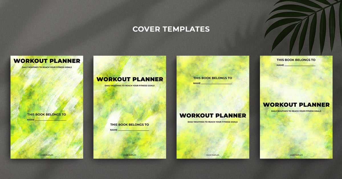 This Workout Planner Cover Template Set features a minimal design with a greenish yellow watercolor brush stroke effect, offering a clean and modern look. Ideal for designers, businesses, publishers, and creatives producing fitness-related content. Perfect for gym planners, workout journals, fitness trackers, and health-oriented planners.The template is fully editable in PSD format, allowing easy customization...