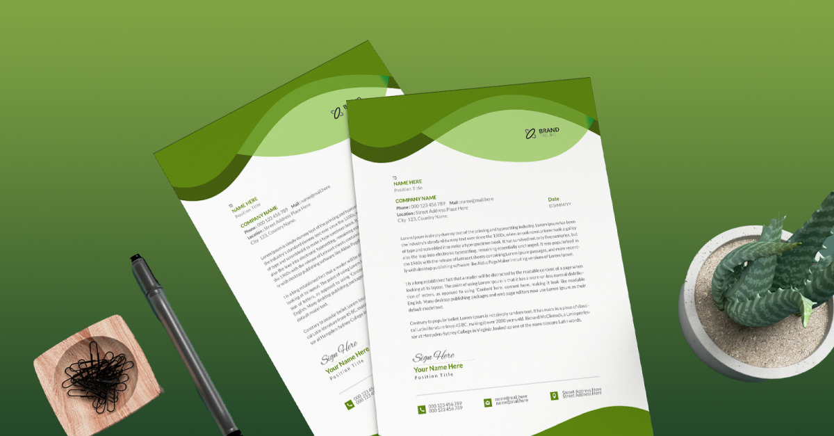Creative Minimal Letterhead Design Template with green color