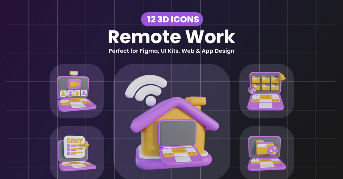 Remote Work 3D Icon Embrace the digital workspace with this 3D icon pack, crafted in a smooth chubby style. Each icon represents essential elements of remote work — from laptops and headsets to home desks and video calls. Perfect for illustrating modern work-from-home culture, online collaboration, and freelance productivity. Perfect for Remote work apps &...