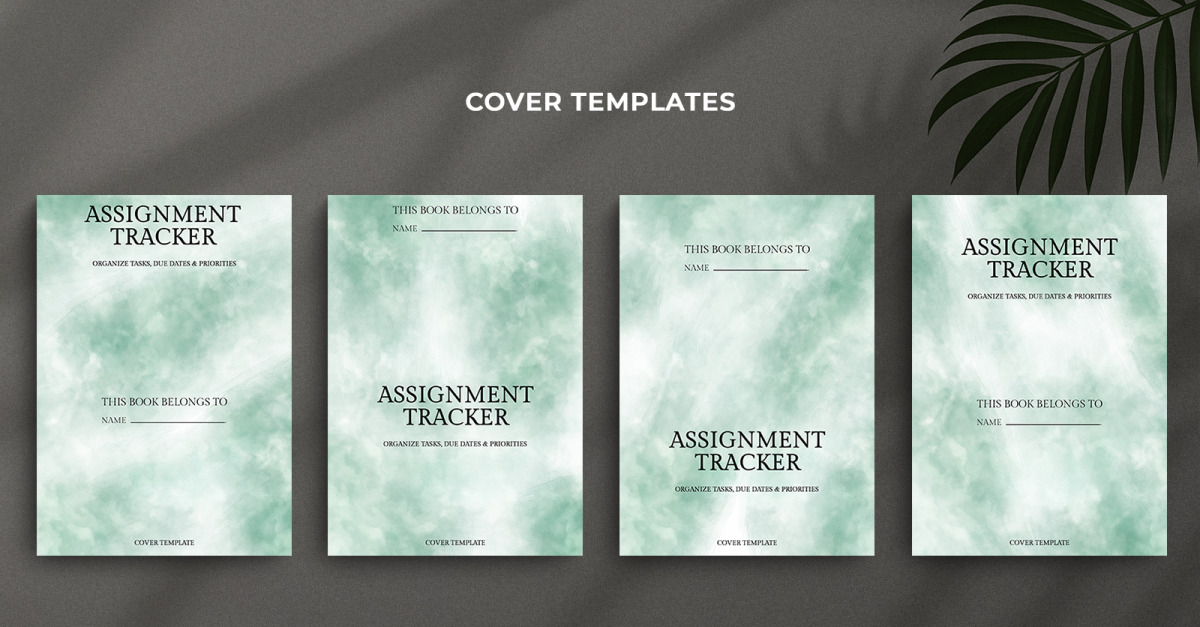 Assignment Tracker Cover Templates – Pastel Green Watercolor Minimal Design for Planners