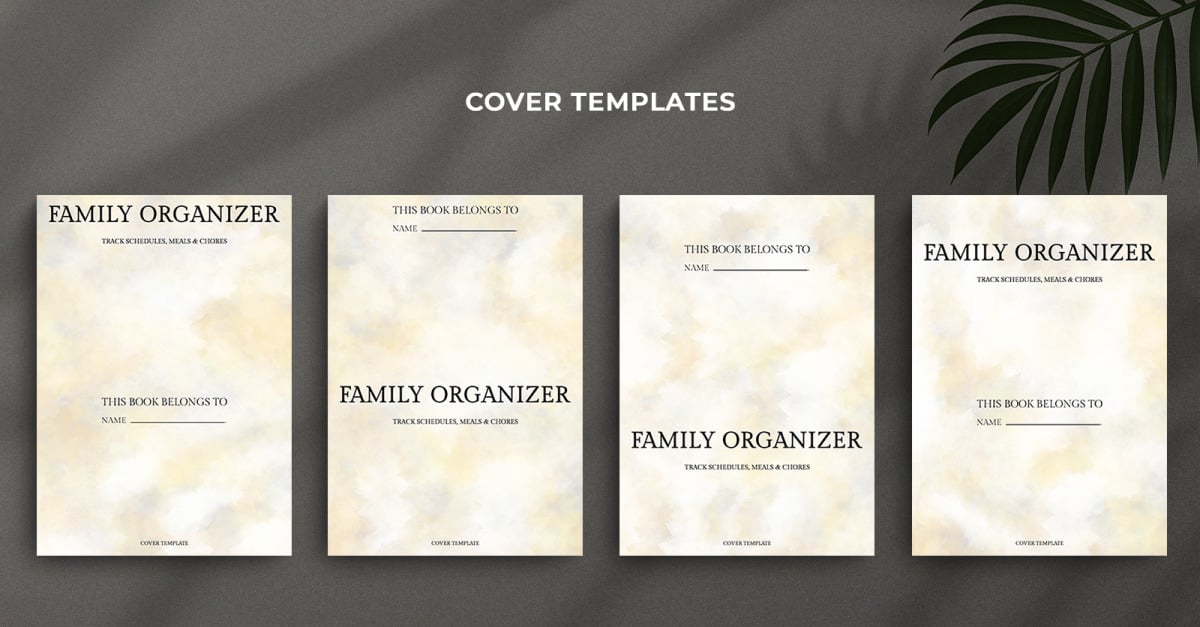 This elegant Family Organizer Cover Template Set features a soft creamy pale and peach watercolor brushed stroke design with a clean, minimalist layout. Ideal for KDP low-content publishers, designers, printable planner creators, and small businesses, this set is perfect for tracking meals, family schedules, chores, or budgeting. Each template is fully editable in Photoshop (PSD),...
