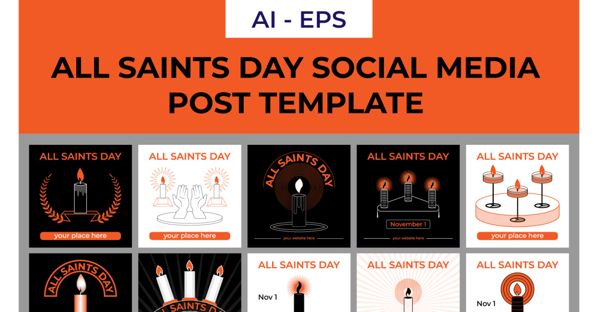 All saints day Social Media is perfect for your business promotion and ready to use for multipurpose uses. It is best for any personal or corporate use. You can use it easily and change everything else. ============================================ Features and files included: • Illustrator AI and Eps files • Size: 1080×1080, Perfect for Any Social Media...