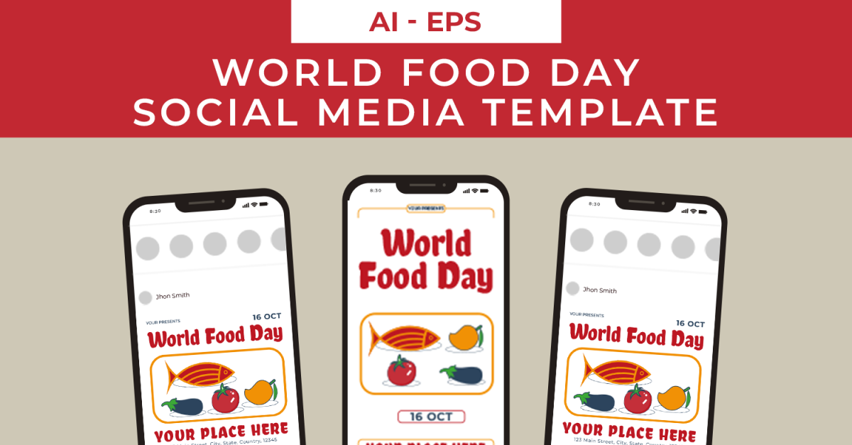 World Food Day Social Media Template It helps you, Social Media, design it in a short time! . A customization is easy with a well-organized file. Features: • Fully customizable and editable • Instagram Post 1080×1080 px (RGB 72DPI) • Instagram Story 1080×1920 px (RGB 72DPI) • Free Font used Included Files: • 2 Eps...