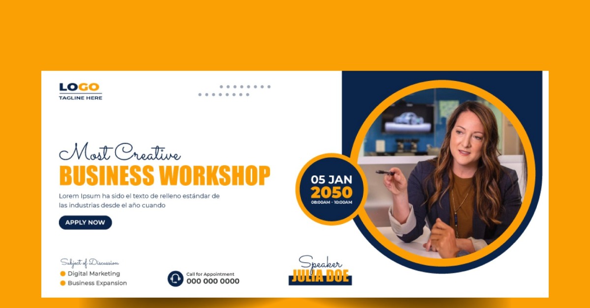 Promote your business event with this professional Corporate Business Conference or Workshop Social Media Cover Banner Template. Designed in Adobe Illustrator, this template features a modern, clean layout with bold typography and a sleek color scheme—perfect for conferences, workshops, seminars, and webinars. Fully layered and easy to edit, you can customize text, colors, images, and...