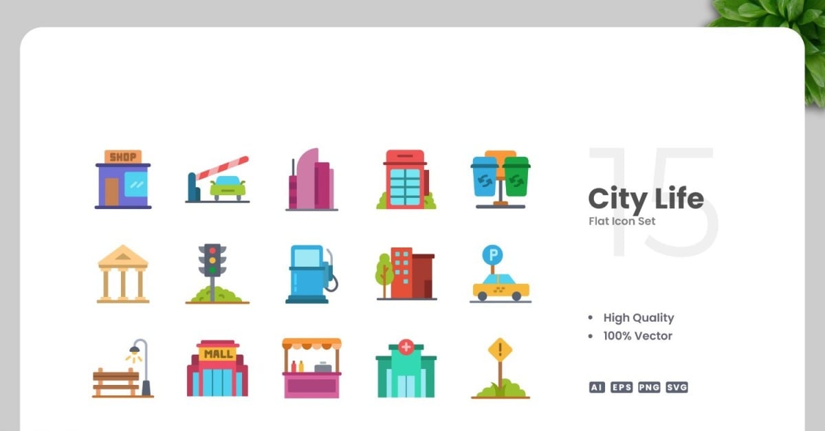 15 City Life Flat Icons Set #530892