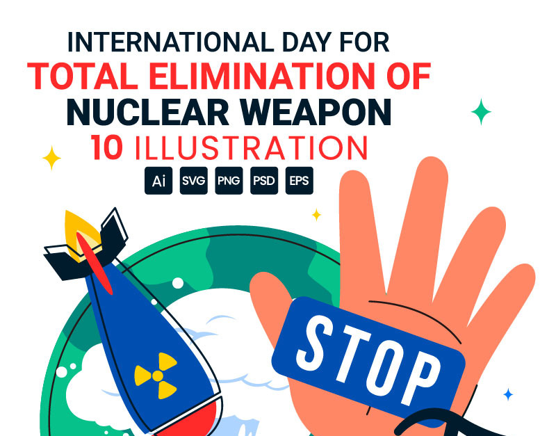 International Day for the Total Elimination of Nuclear Weapons Vector Illustration Featuring a Nuclear Bomb Explosion in a Flat Style Background Suitable for Poster, Web Banner, Brochure, Landing Page and Others Background Template Features: – Fully editable vector files, easy to edit the object, color and background – Include 100% vector Ai, Eps 10, SVG...
