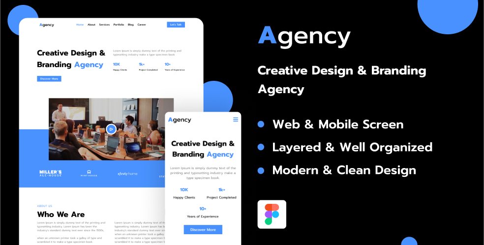 Agency is a modern, clean, and professional one-page Figma template tailored for digital agencies, freelancers, creative studios, startups, and portfolio websites. Designed with user experience and pixel-perfect precision in mind, Agency helps you kickstart your next project with style and functionality. Template Features · 1 Modern Landing Page Design · Fully Responsive Layout (Desktop, Mobile) · 1440 px...